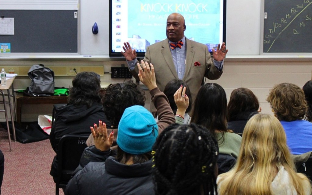 Artist Guest Speaker—NPHS (James Gill): Bryan Collier, renowned artist, illustrator, and Caldecott Award winner, will speak to High School students about his career path as an artist and warrior for social justice. Students from classes ranging from Government to Art to Black Studies attended this inspiring talk in November 2024.